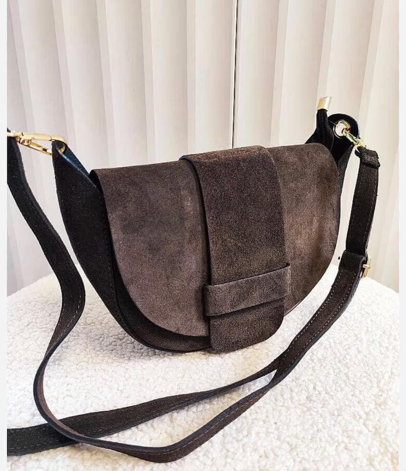 Torebka zamszowa czekoladowa listonoszka, damska torebka, Naturalny zamsz